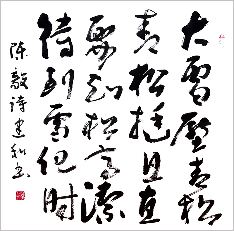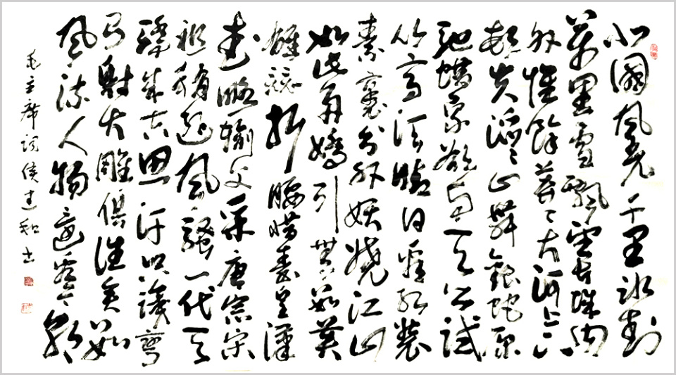 侯建和先生以崇高的人文情怀,以人民为中心的创作导向,秉持坚定的理想信念和强烈的时代责任感;形成了独树一帜的个人风格。在长期的创作实践中,恪守传统,以入古出新为立意,执笔挥毫,落墨有道;字里行间透着浓郁的文化气息。可以说,深厚的传统理论和书法功底使侯建和先生在审美眼光、审美感觉等方面有一个扎实牢固的原点,卓越的的思辨意识让他在审美追求方面能寓古出新,融入自己的笔意,通过线条表现出自我心境和所要表达的精神境界,体现出他行事的严谨和心性的豁达。在当今时代下,侯建和先生以诗意情怀的艺术语言表达了当代艺术的新风貌,留下了属于这个时代的艺术印记,彰显魅力中国的格局与气度,创作出无愧于时代、无愧于人民的文艺作品,展示民族文化自信建设的新成果。