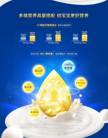 同时,佳贝艾特悦白在营养成分上的表现也非常出色,不仅含有羊奶天然的 388 多种营养素,还特别添加了 41 种配方营养,营养种类远超市场上的多数产品,营养配比也更为科学,更接近宝宝天然口粮的黄金标准。其中,αs1酪蛋白:β酪蛋白= 1:4配比,更亲和低敏;DHA:ARA=1:1.38配比,接近原生比例1:1.35。经过全球科研及临床验证,悦白能够帮助宝宝达到正常的身高体重标准,提升免疫力,改善睡眠质量,为宝宝带来 10 大喂养效果,全方位守护宝宝的健康成长。