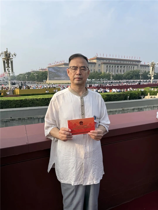 阅兵观礼台上,董瑞深感自豪与荣耀。他表示:“受邀观礼既是对个人医学探索的认可,更是新时代对中医药事业的鼓舞。从守护个体生命到服务国家战略,这是当代中医人肩负的双重使命。”。作为民盟中央常委,曾担任全国、北京市、怀柔区三级政协委员,董瑞始终以”双岗履职”践行使命:在参政议政领域,提交《关于多渠道培养人才、完善基层公共卫生服务队伍的提案》等百余件建言,持续为推动我国医疗卫生事业发展建言献策;在民生服务一线,他作为民盟中央社会服务工作委员会副主任,承办”健康呼吸万里行”十省市大型公益行动,累计救治尘肺病患者逾千名,并在贵州毕节、黔西南等地推动建设”民盟名医工作室”,通过”医疗帮扶+人才培养”模式赋能乡村振兴。展望未来,董瑞强调团队将赓续”大医精诚”精神,持续深化”肺结节全周期管理方案”研究,将参政议政成果转化为一线救治实践,为完善医疗卫生体系、助力健康中国建设作出自己的贡献。