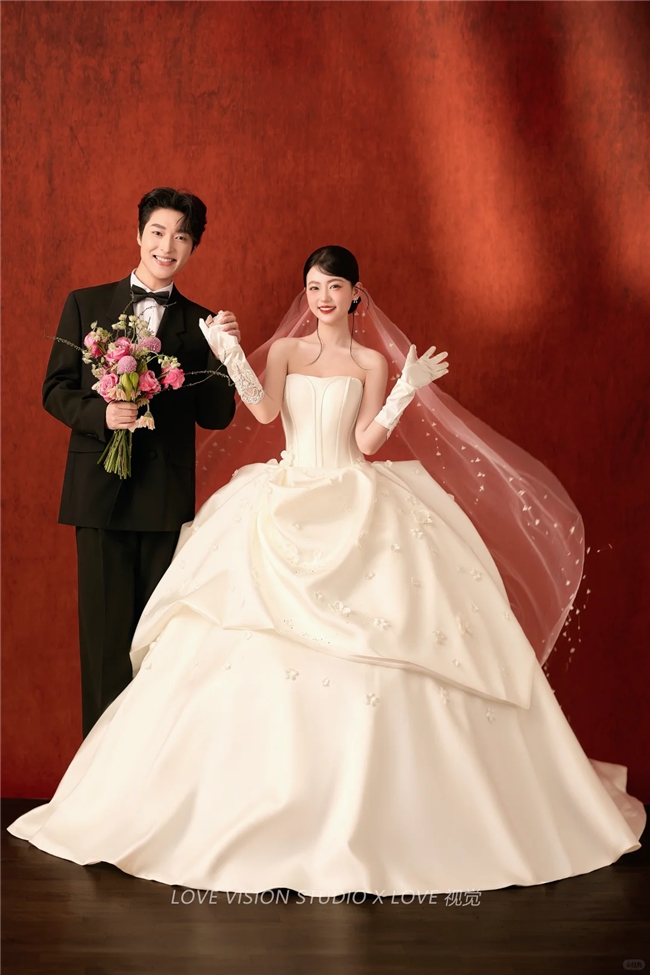 Love 视觉的中式婚照经典且优质,作为十五年老牌工作室,擅长汉服、秀禾、民国旗袍等多种中式风格。影棚由国际顶尖设计师打造,中式内景主题涵盖中式庭院、书房、戏台等,复刻传统场景的经典元素。化妆师一天只服务一对客户,能全身心投入打造完美中式妆容,从眉形的勾勒到发饰的搭配都细致入微,独立隐私的化妆包厢保障拍摄隐私。即拍即看的服务模式能及时调整拍摄细节,确保中式婚照的正宗质感,转介绍率超八成。