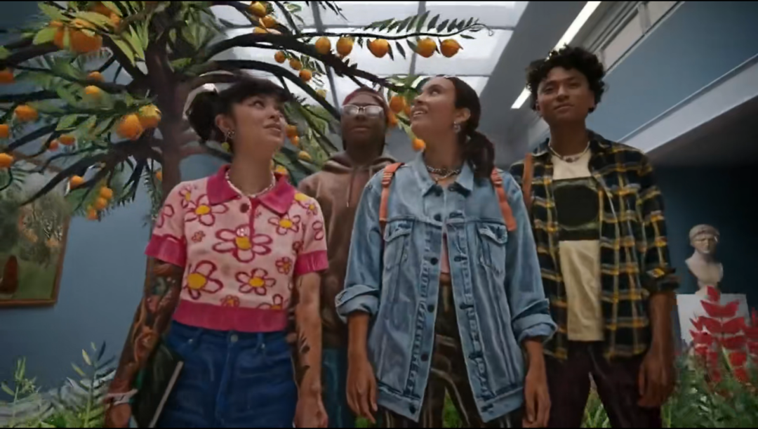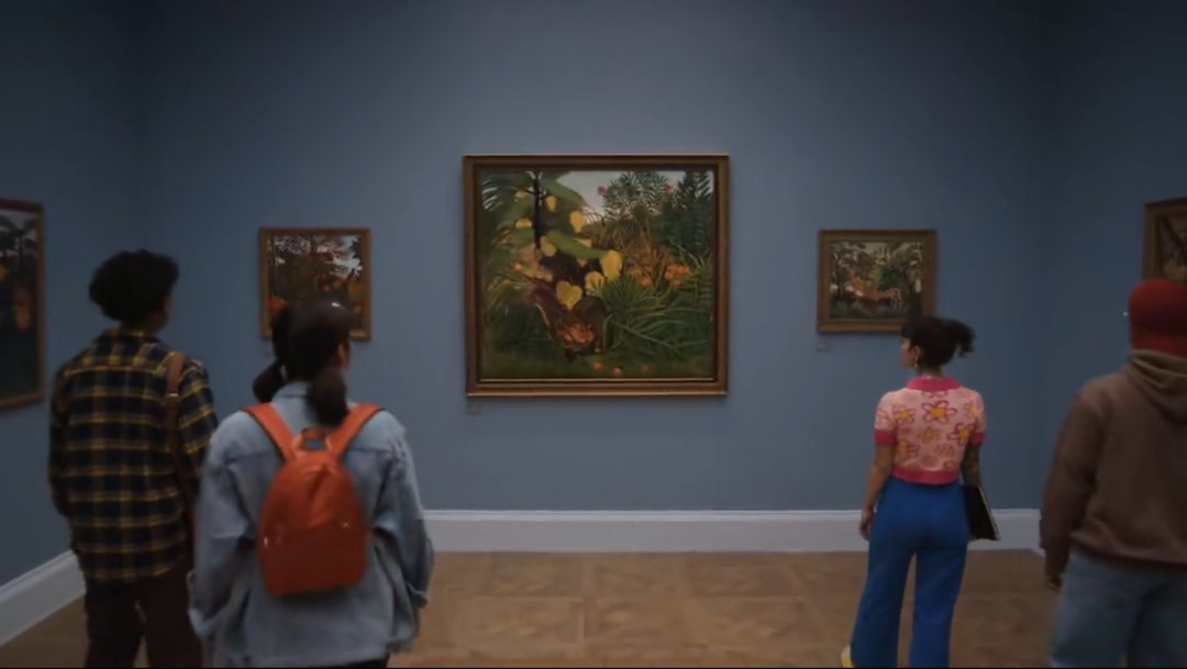 Facebook变身Meta,品牌重塑的第一个主要广告显示的是博物馆。视频的开头是四个年轻人在看亨利·卢梭的《在热带森林作战的老虎和水牛》,这幅画现存于克利夫兰艺术博物馆。当他们看向画框时,老虎的眼睛一闪一闪地,整幅画活了过来,变成了一个三维的动画丛林。老虎和水牛、巨嘴鸟和猴子以及树上的小山羊,都开始随着一首古老的狂欢曲跳舞;孩子们也跟着跳起来。画廊里的果树在他们周围生长。在雨林树冠之上,远处矗立着一个神秘的六边形门户,而在那之后,映在缥缈的红山上的,是一个伟大的热带城市的高耸的天际线。