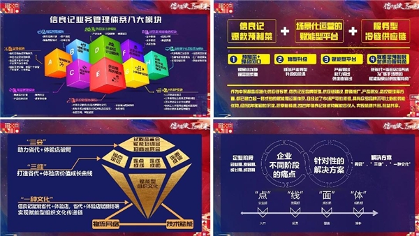技术赋能,信良记通过五六年的时间已全面的实现了信息化,每年在信息化的投入也非常巨大,就是为了打造前台中台后台全面的信息化的赋能体系。未来我们给每一个体验店加盟商、省代及各类型的合作伙伴赋能,基本都靠全面的信息化赋能体系,高效的触达、传播及赋能。